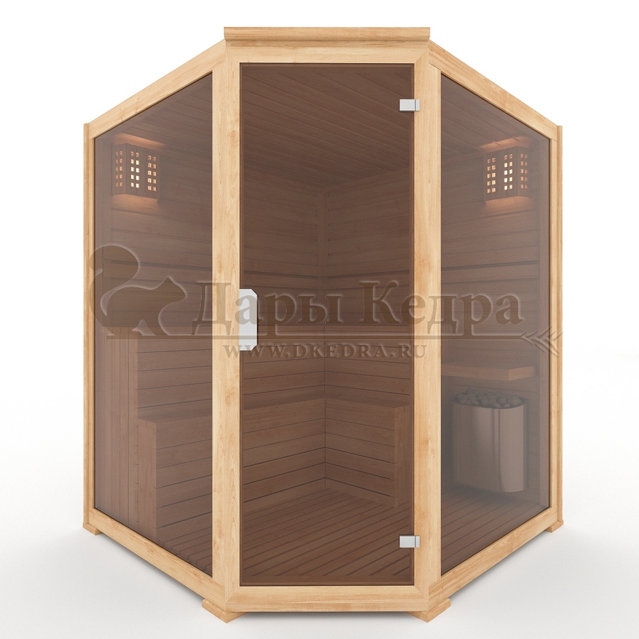 Четырехместная угловая финская сауна кабина из кедра с электрокаменкой