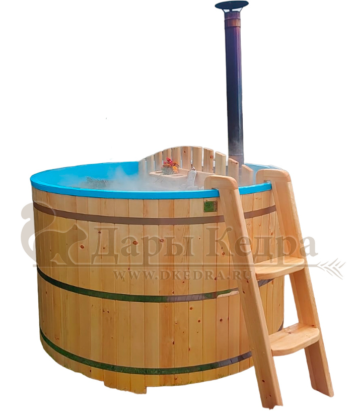 Фурако круглая из кедра с литой термопластиковой вставкой с внешней печью Это уличная подогреваемая купель с круглой внутренней чашей из термопластика, которая имеет цельную форму вместе с сиденьями и дном. Для удобства пользования купель фурако оборудована приставной лестницей. Подогрев воды осуществляется за счет внешней печи с дымоходом. Термопластик устойчив к воздействию температур, облегчает уход за фурако и увеличивает срок ее службы. Парение на свежем воздухе – это отличный способ укрепить здоровье и поддержать организм в тонусе.