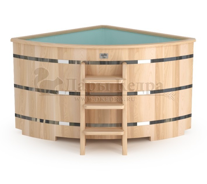 Гладкая столярная угловая купель из кедра с пластиковой вставкой