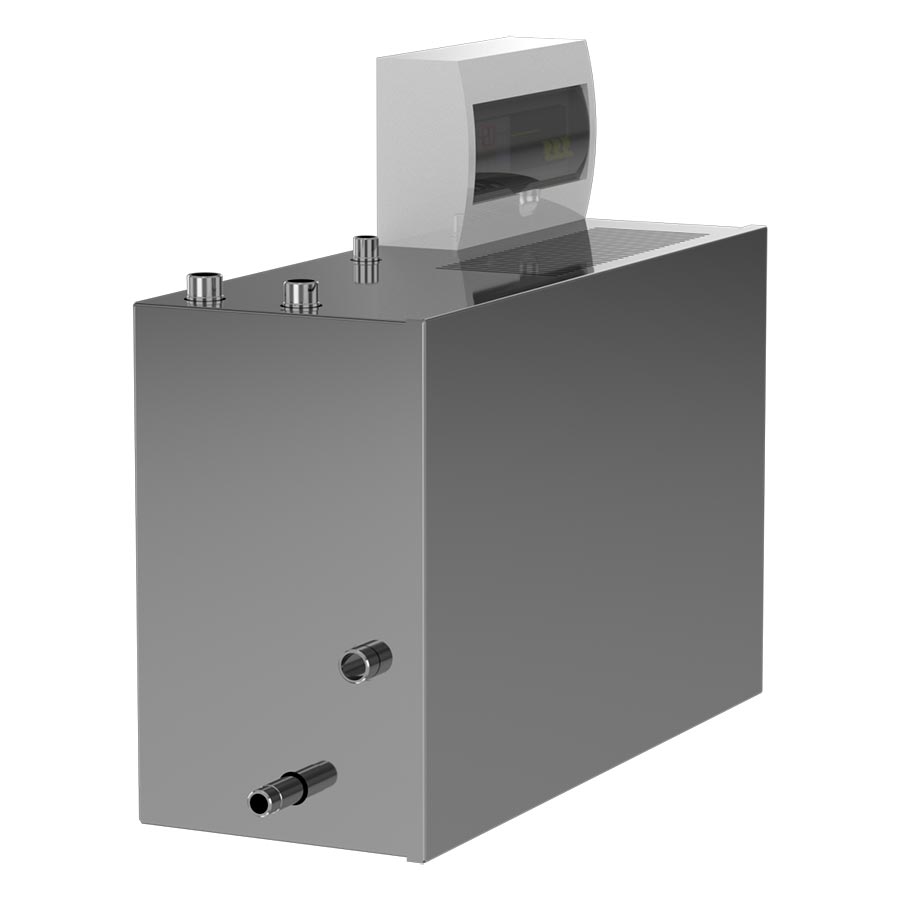 • Парогенератор проточный с выносным пультом управления, 21 кВт Проточные парогенераторы подключаются к водопроводу и автоматически добавляют воду в прибор при ее расходовании. Парогенератор служит для образования пара в саунах, хамамах, банях и душевых кабинах. Мощность стоит выбирать в зависимости от объема парной. Для удобства пользования парогенератор имеет выносной пульт управления, который позволяет установить температуру, мощность и время процедур парения. При достижении необходимой температуры происходит автоматическое прекращение подачи тепла для нагрева воды. При снижении температуры более чем на 3°С температурный датчик снова включает подогрев. Таким образом время непрерывной работы парогенератора составляет более 12 часов.