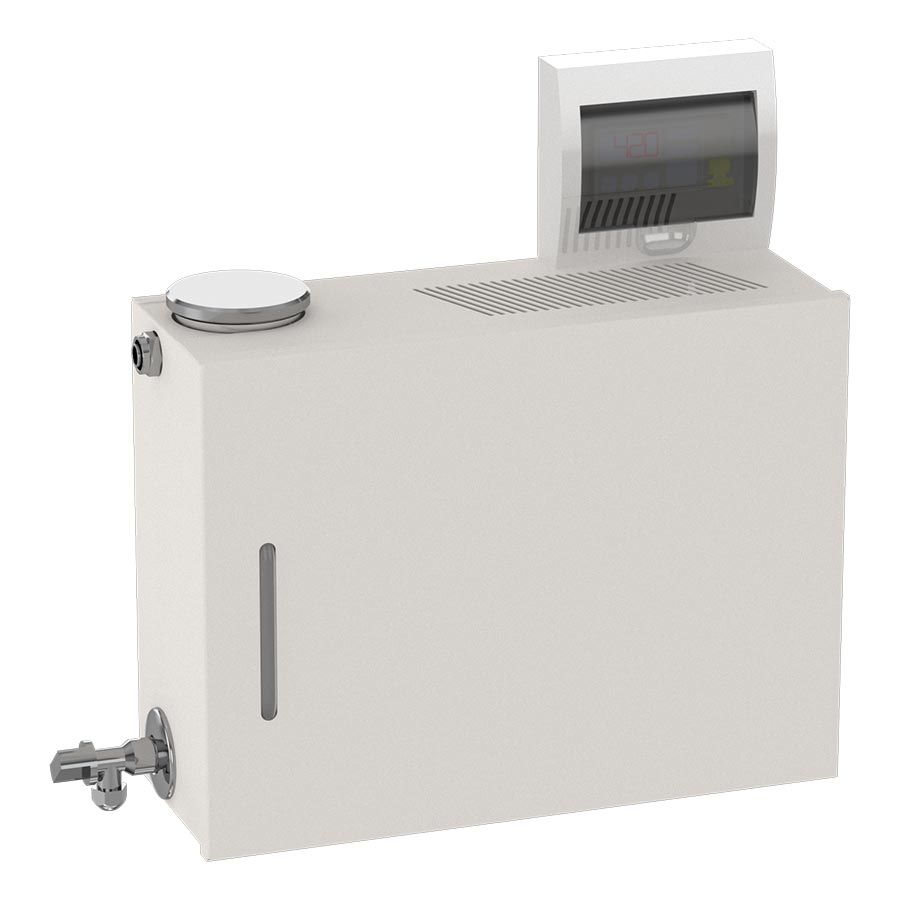 • Парогенератор проточный c выносным/встроенным цифровым пультом управления, 12 кВт Проточные парогенераторы подключаются к водопроводу и автоматически добавляют воду в прибор при ее расходовании. Парогенератор служит для образования пара в саунах, хамамах, банях и душевых кабинах. Мощность стоит выбирать в зависимости от объема парной. Работа парогенератора осуществляется за счет встроенного или выносного пульта управления (на ваш выбор). Он позволяет устанавливать температуру, мощность и время процедур парения. При достижении необходимой температуры происходит автоматическое прекращение подачи тепла для нагрева воды. При снижении температуры более чем на 3°С температурный датчик снова включает подогрев. Таким образом время непрерывной работы парогенератора составляет более 12 часов.