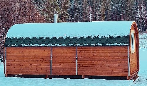 Летом на базу заказывали баню-буханку. Смотрится интересно и необычно, огромный плюс, что быстро нагревается. Следовательно и поток желающих по париться увеличивается. Покрытие качественное, за зиму не потеряло цвет. Мы довольны, весной еще пару штук таких же закажем. Рекомендуем!